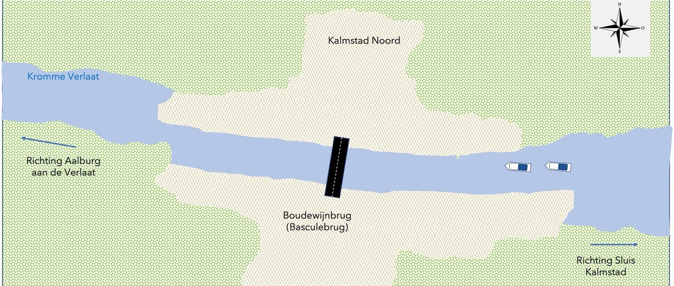 Twee motorjachten 300 meter ten oosten van de brug