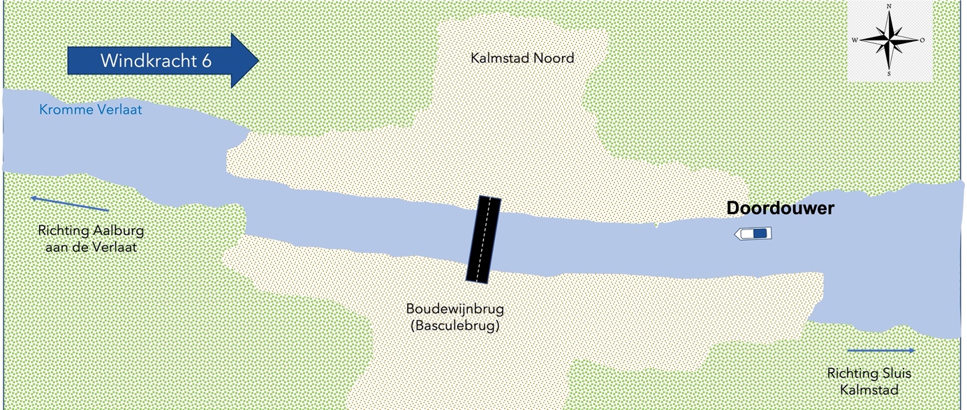 1 x tegenliggend Beroepsschip gaat als eerste door de brug
