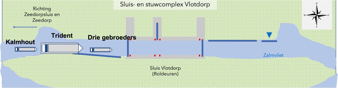 Je hebt aan de Trident gezegd dat hij als 2e in mag varen, 2e lengte stuurboord achter de Drie Gebroeders.