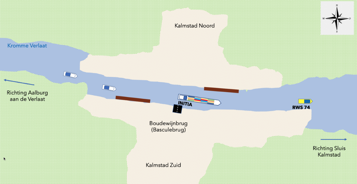 #9. Tijdens een ochtenddienst op de bediencentrale Aalburg aan de Verlaat heb je net de Boudewijnbrug geopend om containerschip Initia door te laten. Als de Initia net door de brug vaart kijk je op je camerabeelden en lijkt het erop dat de Initia een oliespoor achter zich heeft. Welke actie onderneem je nu als eerste? (3 punten)